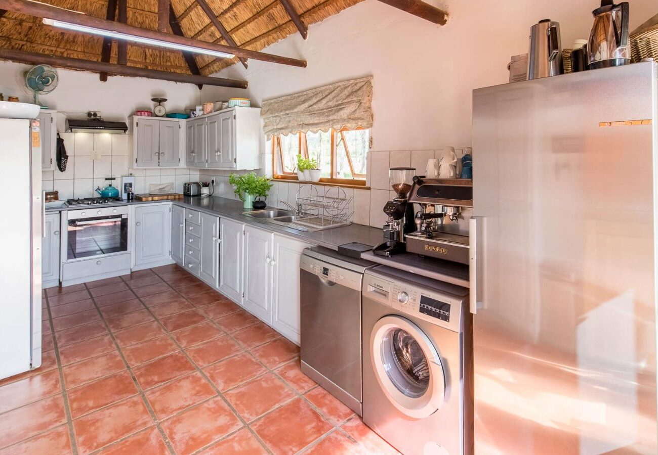 Other cottages include an upmarket second dwelling with 2 bedrooms, full bathroom, a lovely thatched attic, large enough to sleep two people and has a fitted kitchen, open plan living area and veranda with outside braai. The views are spectacular! Come see for yourself.