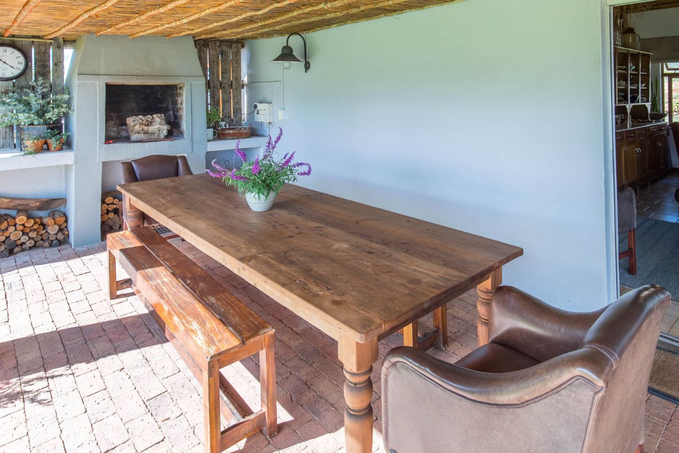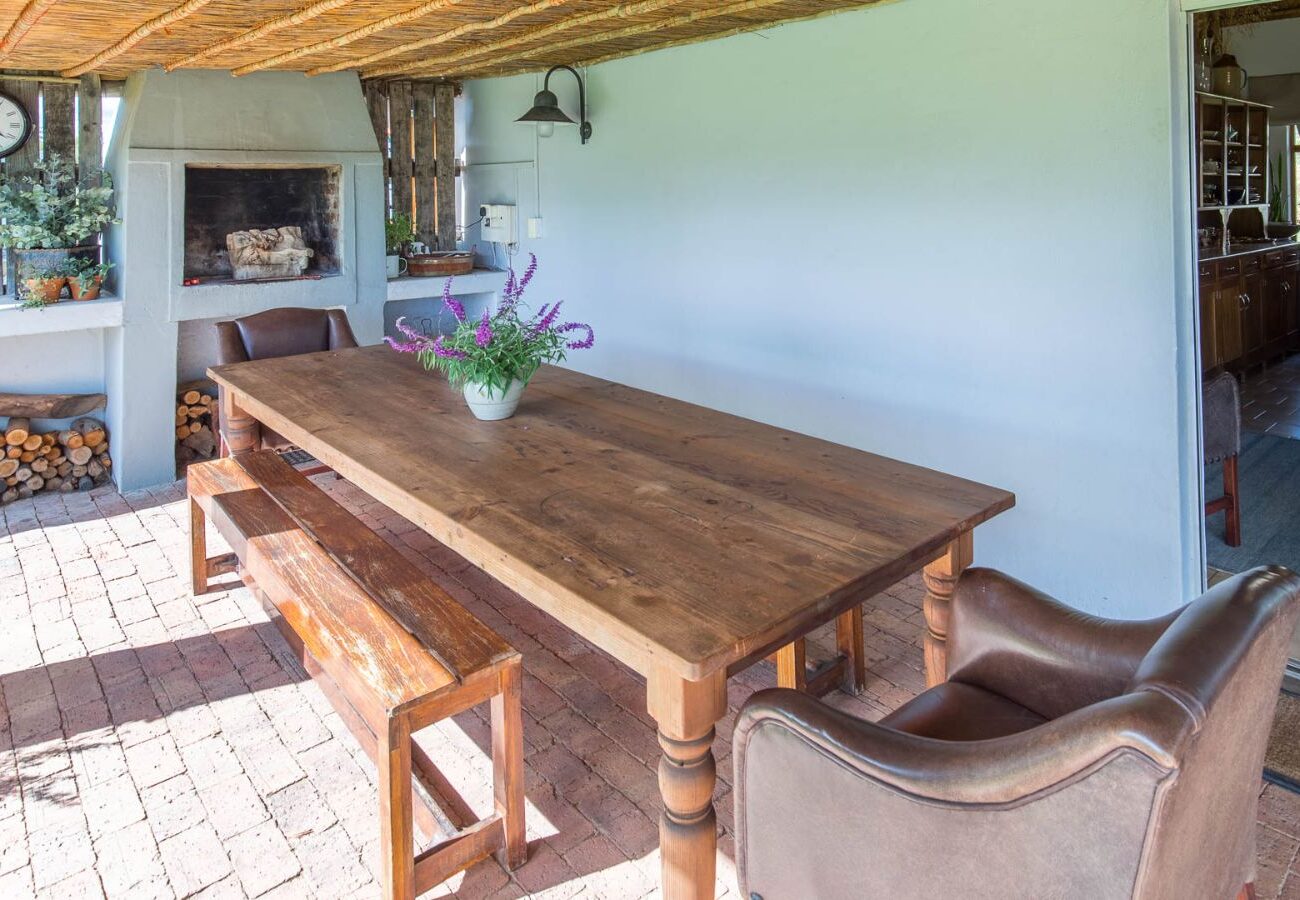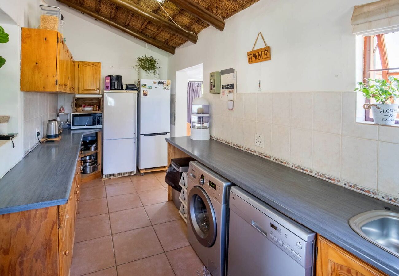 The beautiful, farm-style residence is well planned, well maintained and tastefully decorated. It has 1 bedroom, 1 bathroom, kitchen, open plan lounge/dining room and outside entertainment area with a braai and swimming pool. Close to this dwelling is a Guest Room with bathroom facilities and the potential to be converted into another income generating cottage.